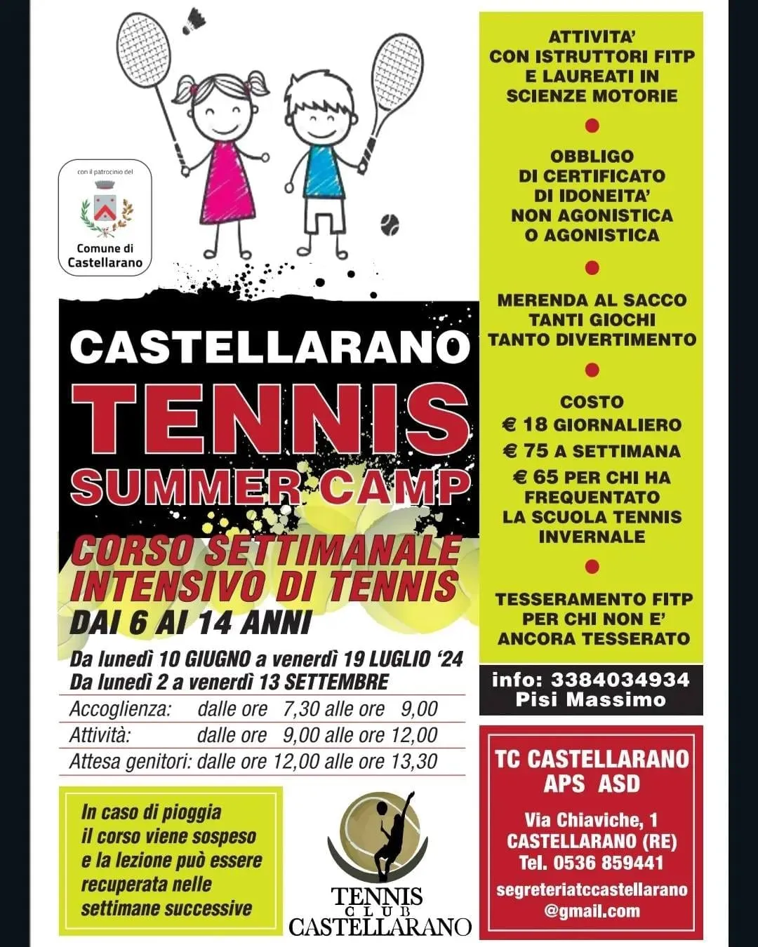 Aprono le iscrizioni alla Scuola Tennis del Tennis Club Castellarano! Corsi di avviamento per bambini e ragazzi dai 5 ai 18 anni e pacchetti per adulti. Prove gratuite a settembre per i nuovi iscritti.